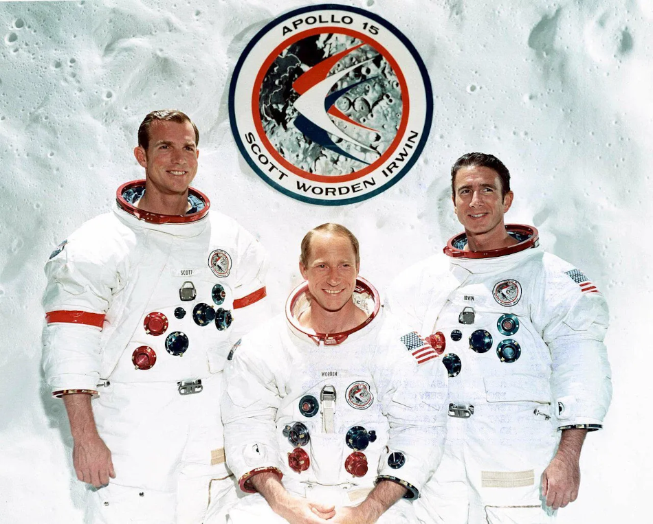 Die Apollo-15-Mission wurde am 26. Juli 1971 gestartet. Die Besatzung bestand aus David R. Scott als Kommandant, James B. Irwin als Pilot der Mondlandefähre und Alfred M. Worden als Pilot der Kommandokapsel. Zum ersten Mal sind Menschen mit einem Fahrzeug auf dem Mond gefahren. Die erste der Apollo-Missionen, die für längere Aufenthalte auf dem Mond konzipiert war, trug einen Mondrover, den Kommandant David Scott und der Pilot der Mondlandefähre, James Irwin, nutzten, während sie mehr als 18 Stunden auf der Oberfläche waren. Sie legten mit dem Rover mehr als 44 Kilometer zurück, bauten Experimente auf und sammelten 77,1 Kilogramm Proben.
