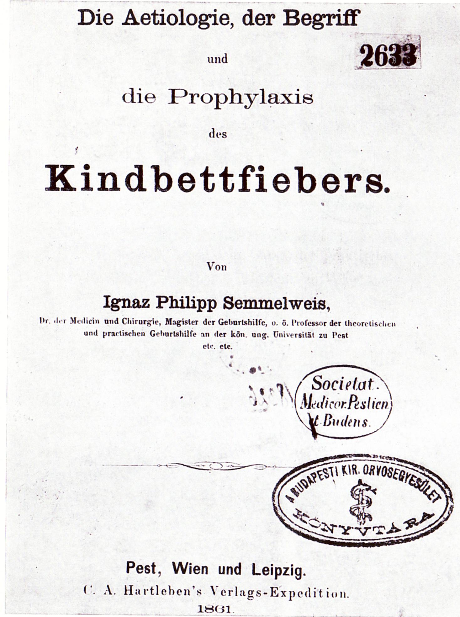 1861 veröffentlichte Semmelweis sein Hauptwerk Die Ätiologie, der Begriff und die Prophylaxe des Kindbettfiebers. Er schickte es an alle namhaften Geburtshelfer und medizinischen Gesellschaften im Ausland, aber die allgemeine Reaktion war negativ. Das Gewicht der Autorität stand im Gegensatz zu seinen Lehren. Er richtete mehrere offene Briefe an Medizinprofessoren in anderen Ländern, aber mit wenig Erfolg. Seine Briefe wurden zunehmend beleidigend, mit Ausdrücken von Wut, Frustration und Bitterkeit. Auf einer Tagung deutscher Mediziner und Naturwissenschaftler lehnten die meisten Referenten – darunter auch der Pathologe Rudolf Virchow – seine Lehre ab.